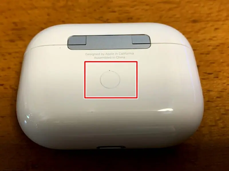 iPhone以外のデバイスと接続したい場合、イヤホンを収納した状態で、チャージケース背面のボタンを約5秒間長押しする。
