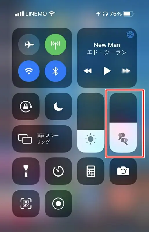 ▼iPhoneの画面上からもイヤホン音量の調節などが可能。