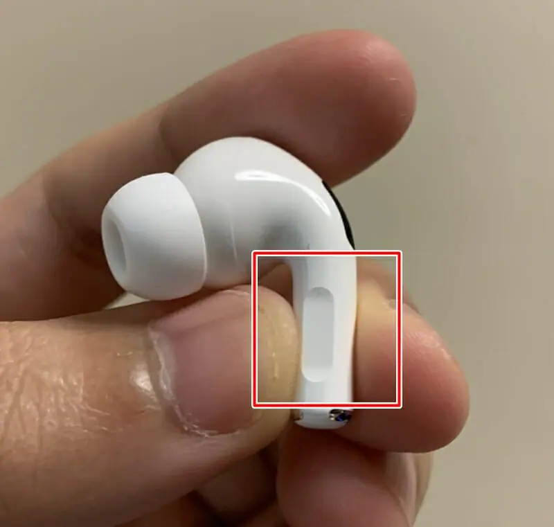 ▼左右のイヤホンには感圧センサー(画像赤枠部分)が搭載されており、装着中にタッチすることで様々な機能を利用できる。