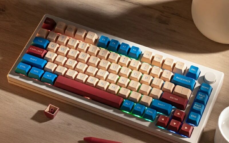 また、筐体自体は精巧な「CNC加工アルミ合金シャーシ」と高品質な「デュアルトーンPBTキーキャップ」で構成されており、キー底部にはダイナミックRGBバックライトも搭載。見た目的にも質感的にもプレミアムなキーボードとなっている。