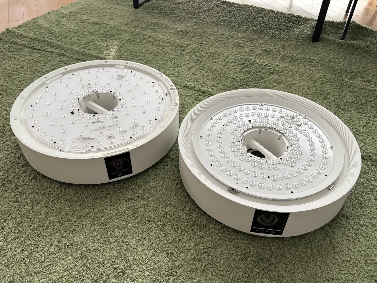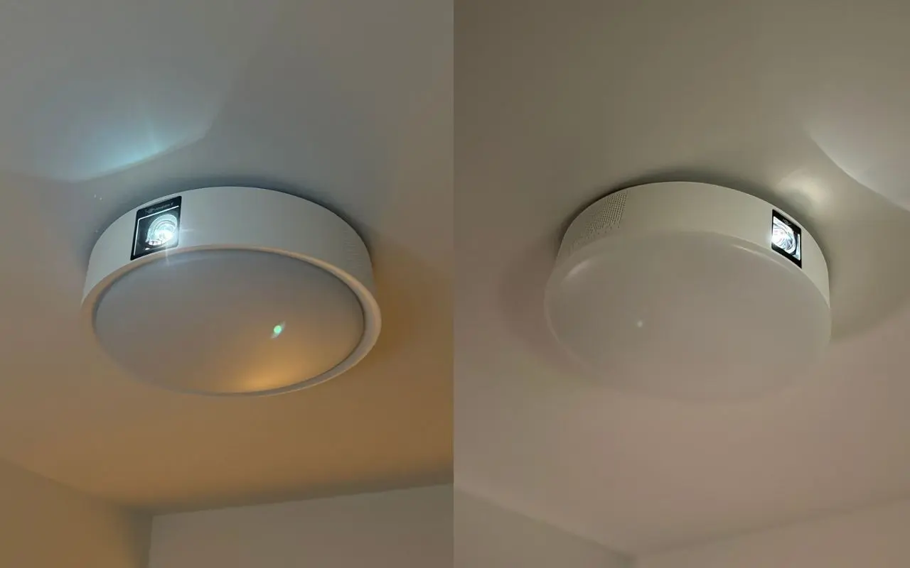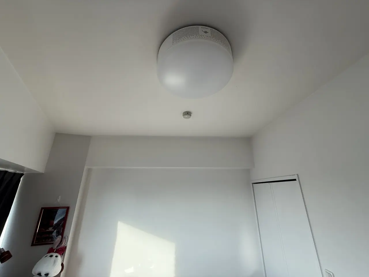 実際に天井へ設置してみると、Aladdin X2 Plusの方がわずかに本体サイズ・シェード径および厚みが大きいことから、若干ではあるが存在感のある印象を受ける。ただし、カラーやデザインはどちらもシンプルで、特に白い天井との一体感は非常に高く、部屋の雰囲気を損ねることはない。