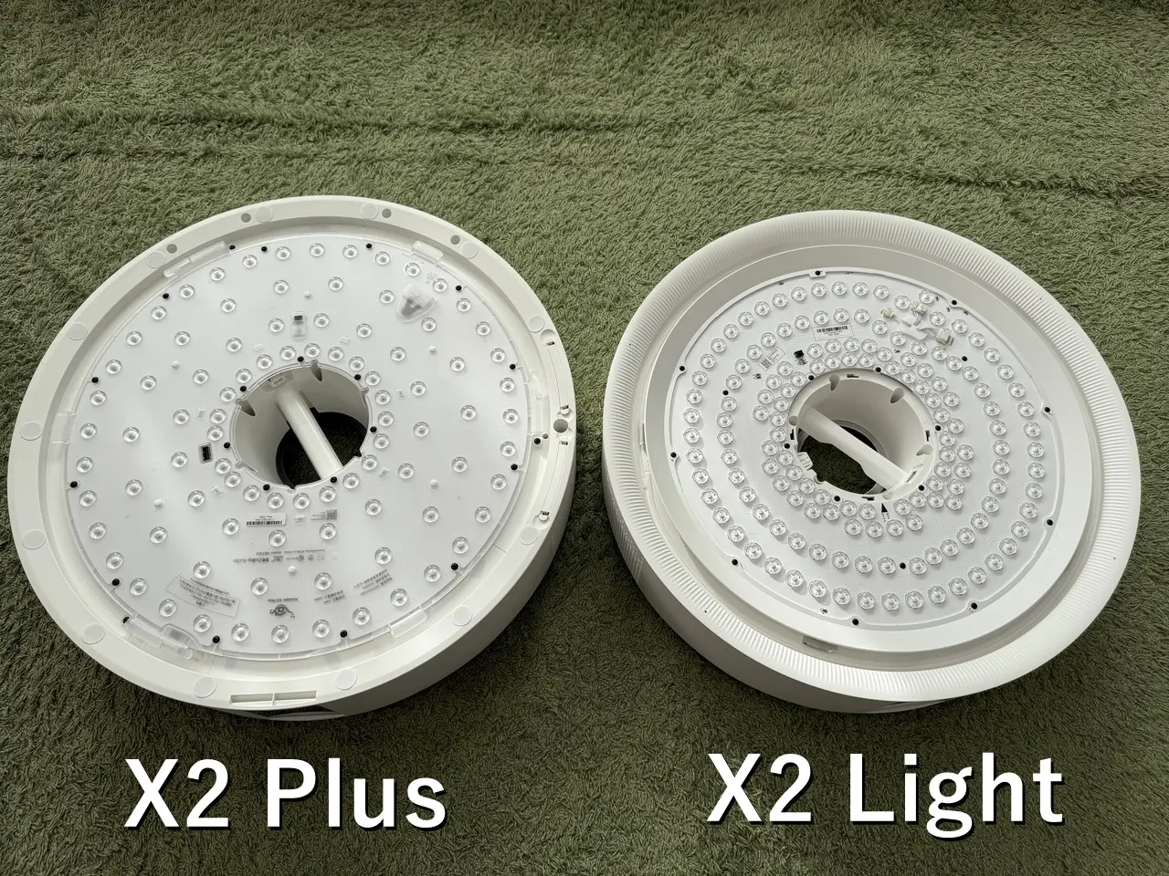 カタログスペックの時点からも明らかなように、Aladdin X2 LightとAladdin X2 Plusにはシーリングライトとしての性能において明確な差が存在する。