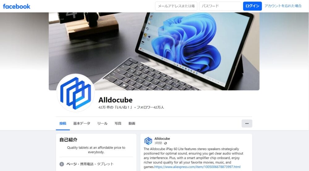 続いて、Alldocubeの公式フェイスブックのアカウントをフォローします。