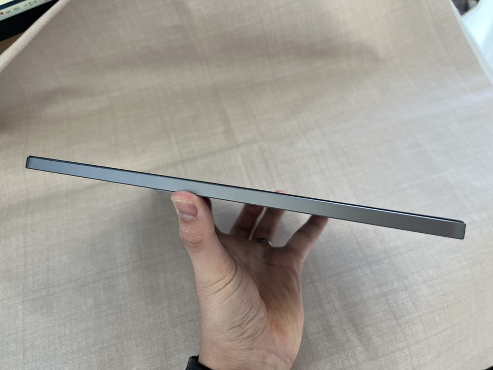 筐体は薄型かつスタイリッシュな見た目で、そこそこの高級感も感じられるデザインとなっている。本体重量は約544gとややズッシリ感はあるものの、長時間持ち続けてもそこまで腕が疲れることは無い。