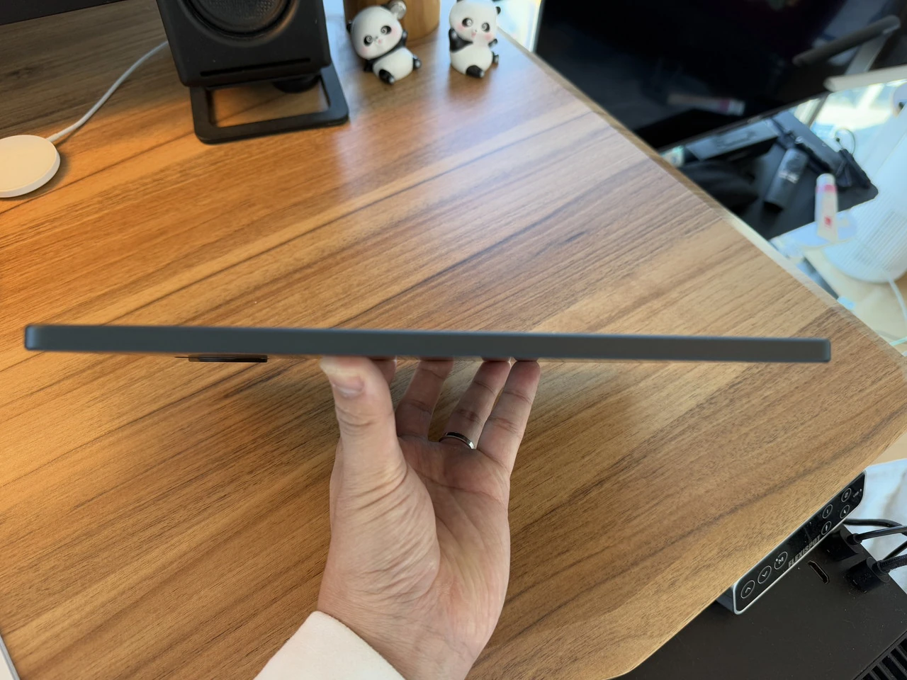 ▼厚みは7.95mm。カバンなどに入れても支障なく持ち運べるだろう。