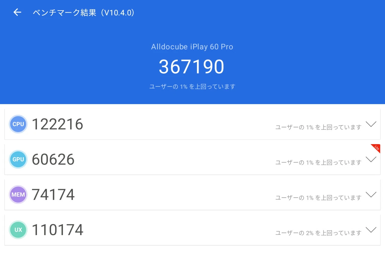 | モデル名 | ALLDOCUBE iPlay60 Pro |
