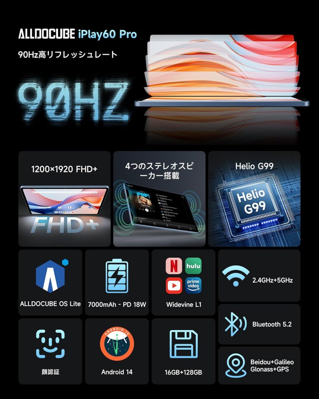 今回紹介した『ALLDOCUBE iPlay60 Pro』について、特徴をまとめると以下の通りだ。