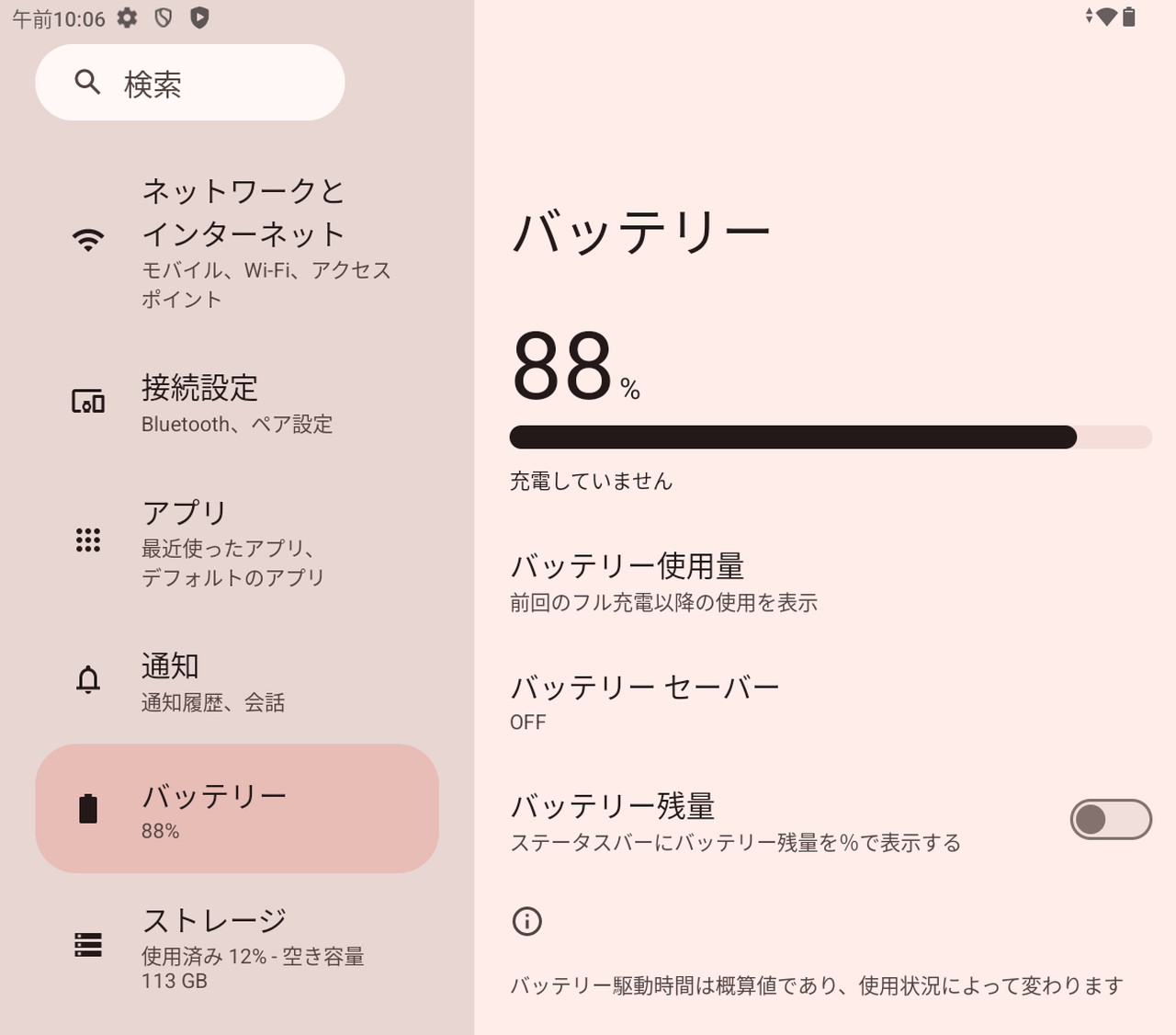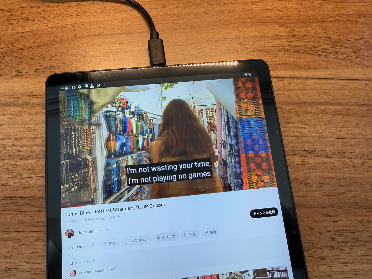 実際に使用してみたところ、動画視聴、ウェブブラウジング、少々のゲームアプリ起動などを日中に行ってみたが、2日間(計12時間ほど)は充電なしでも利用し続けることが可能であった。