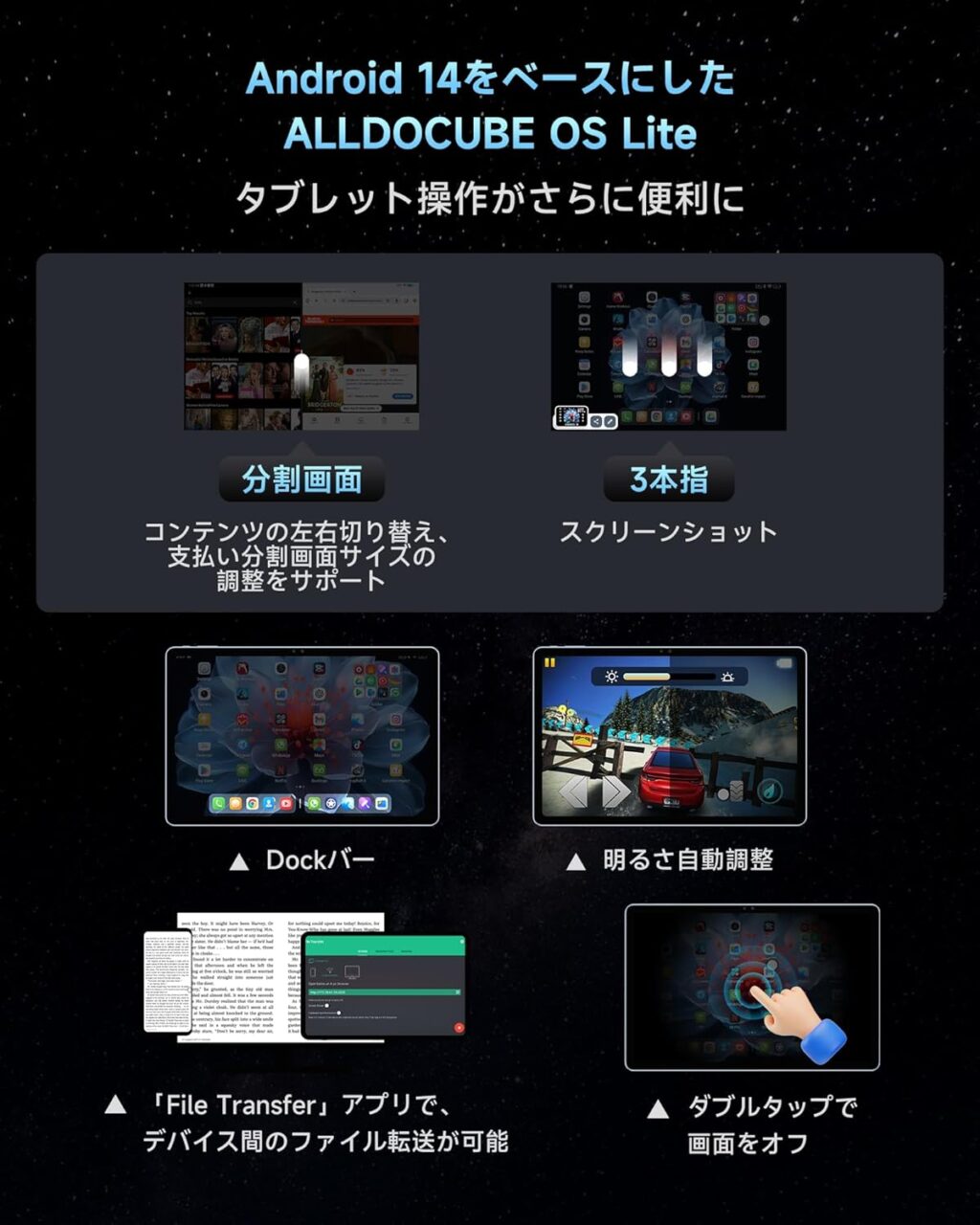 | OS | ALLDOCUBE OS Lite(Android 14ベース) |