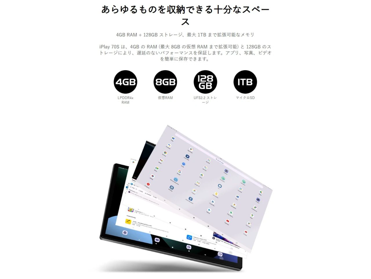 『ALLDOCUBE iPlay 70S』は、最新OSのAndroid 15を搭載したタブレットです。