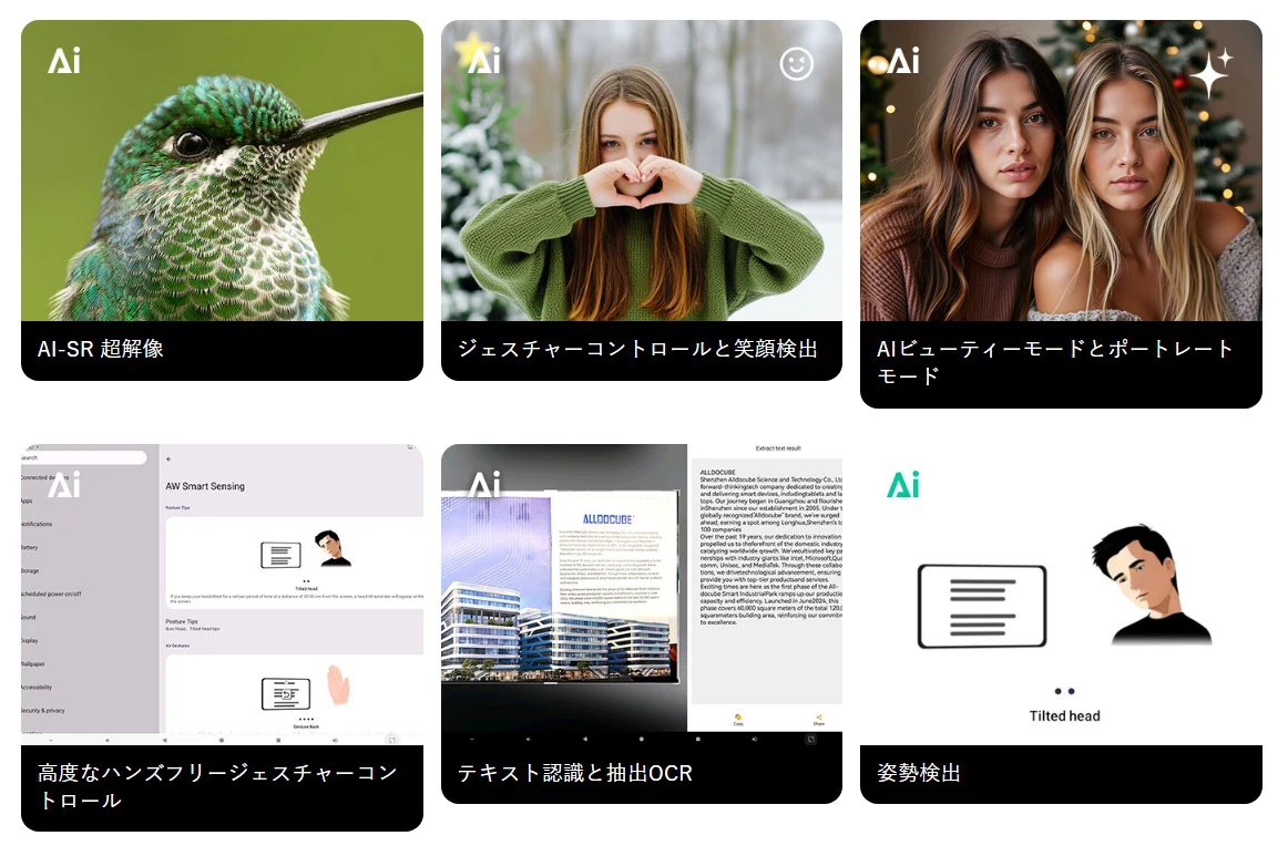 テキスト認識やAIビューティーモードなどに加え、ハンズフリージェスチャーコントロール、姿勢検出などの便利なAI機能を多数搭載しています。