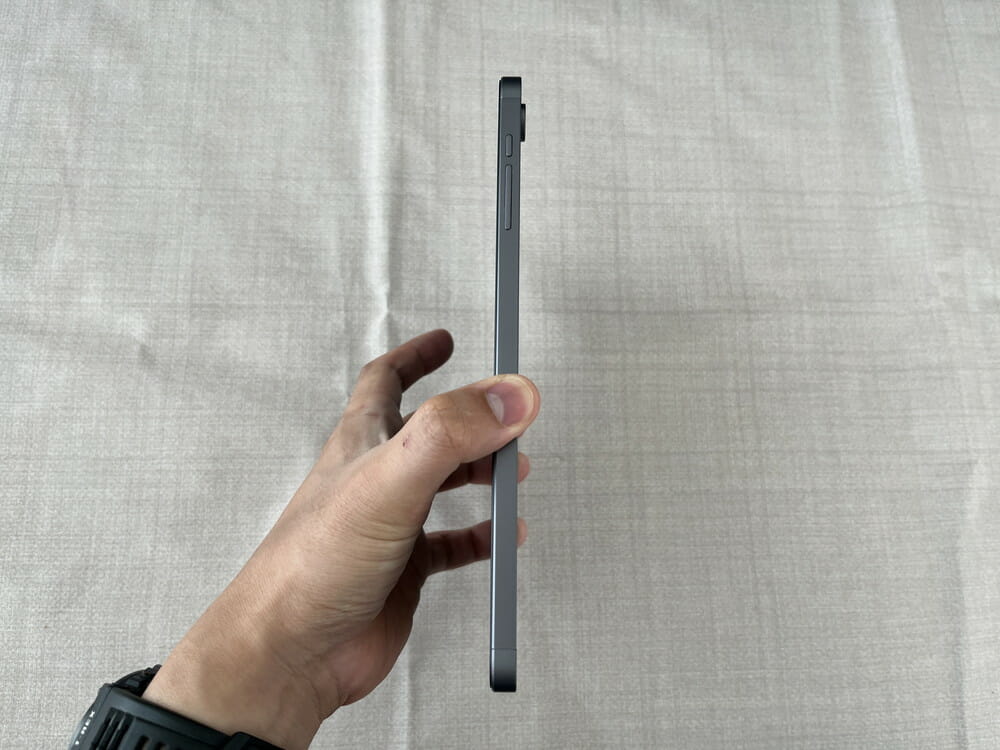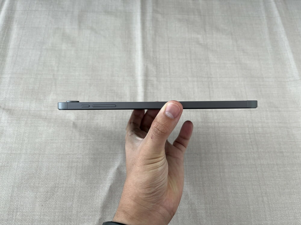 筐体サイズは202.7×126×7.5mm、重量は約292gと小型かつ軽量で、長時間持ち続けても疲れず、カバンなどに入れて外出先へ持ち運ぶ用途にも適している。