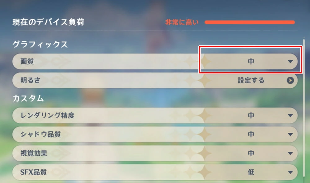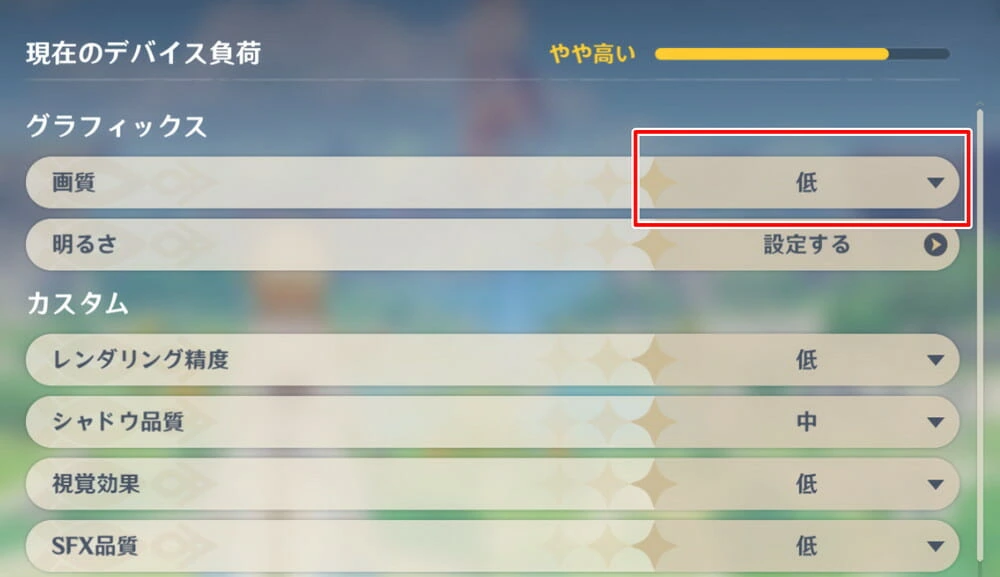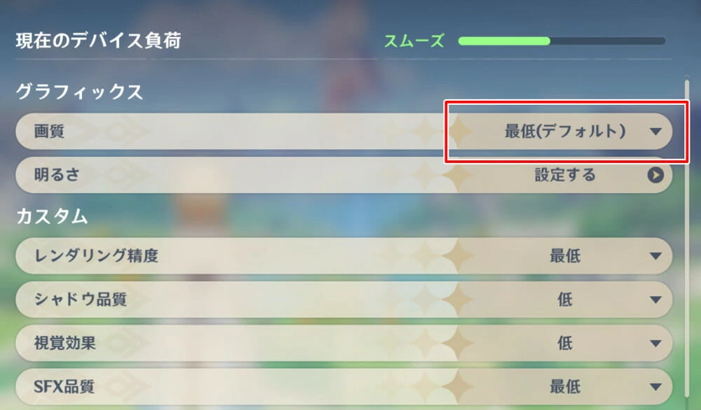 ▼ "低" に上げるとデバイス負荷が高まるが、依然として快適なゲームプレイが可能であった。