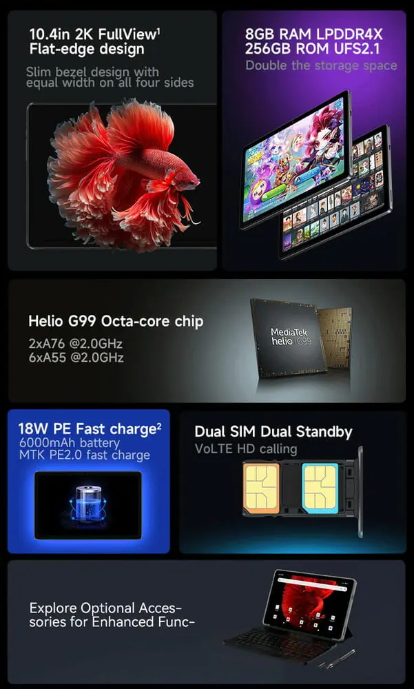 Alldocube-iPlay 50 Pro Maxタブレット,2K,10.4インチ,8GB RAM,256GB ROM,Android 12,6000mah helio g99