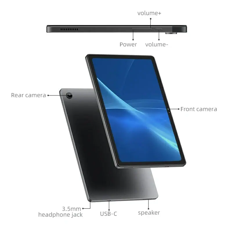 ▼タブレットの外観。10.4インチディスプレイ搭載のシンプルかつスタイリッシュな外観。