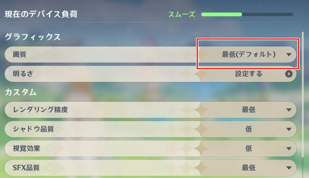▼ "低" に上げるとデバイス負荷が高まるが、依然として快適なゲームプレイが可能であった。
