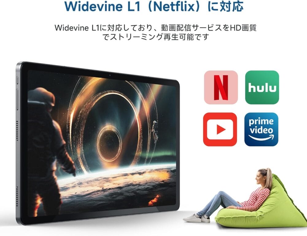 なお、WidevineはL1サポートとなっており、HuluやAmazonプライムビデオなどの配信サービスにおいて、高画質設定の映像を楽しむことが可能だ。