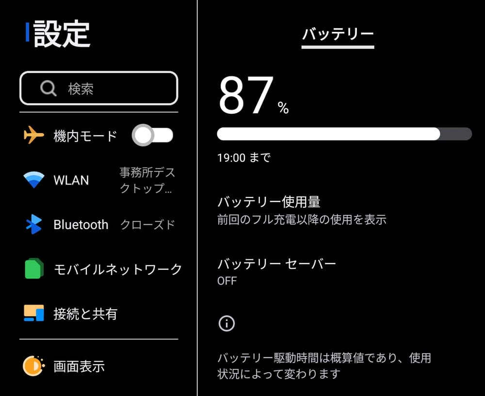 実際にウェブサイト閲覧や動画視聴などに使用してみたが、10時間程度のタブレット利用が可能であった。