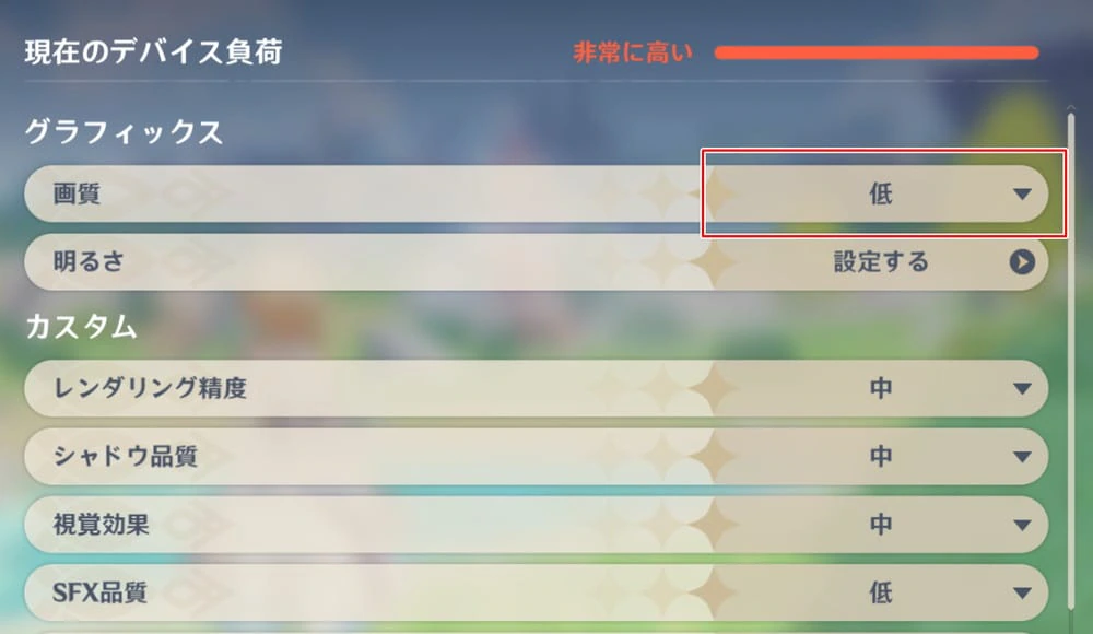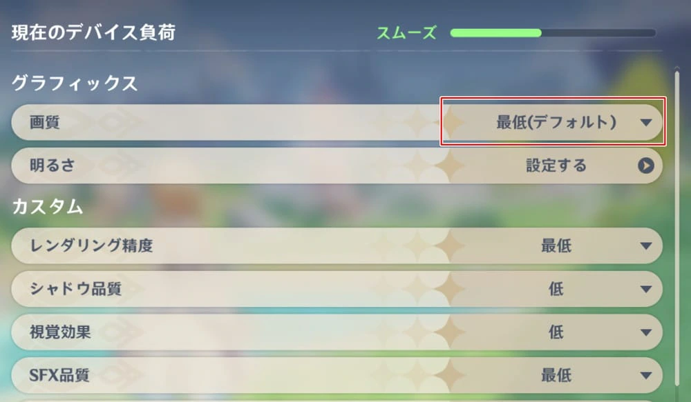 ▼ "低" に上げるとデバイス負荷が高まるが、依然として快適なゲームプレイが可能であった。