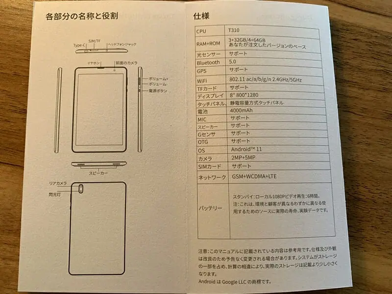 CPUには『UNISOC T310 オクタコアプロセッサー』を採用しており、RAMは3GBを搭載。大抵の作業を快適にこなせるスペック構成となっている。