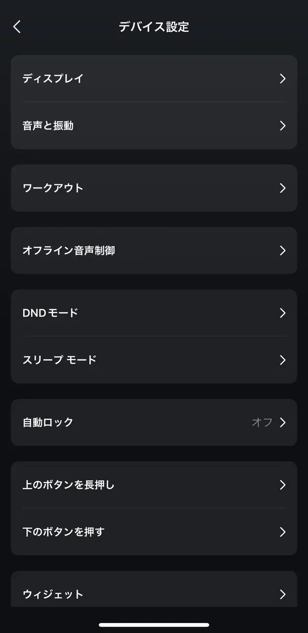 ▼アプリ上には、ウォッチの機能に関わる非常に豊富な設定項目が用意。自身の使い勝手が良くなるよう、柔軟な調節が可能です。