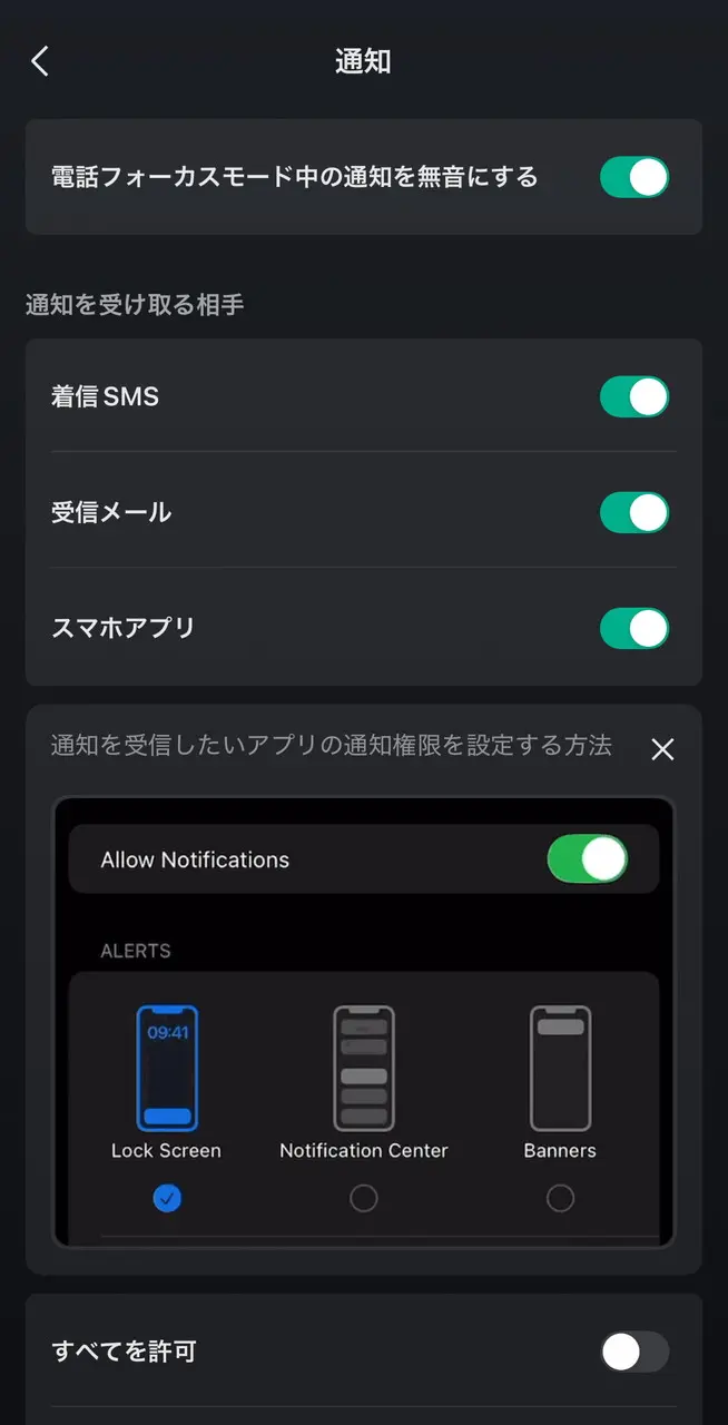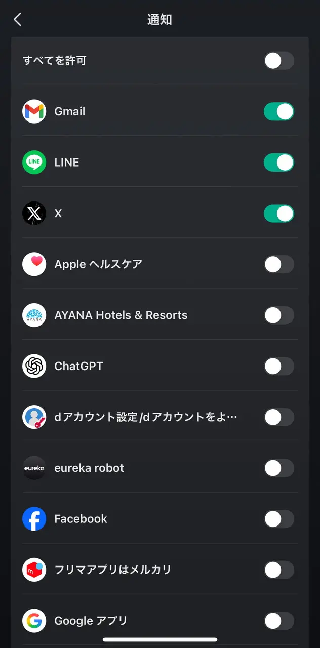 ▼アプリごとに通知のON/OFFを切り替えられる点もGOOD。