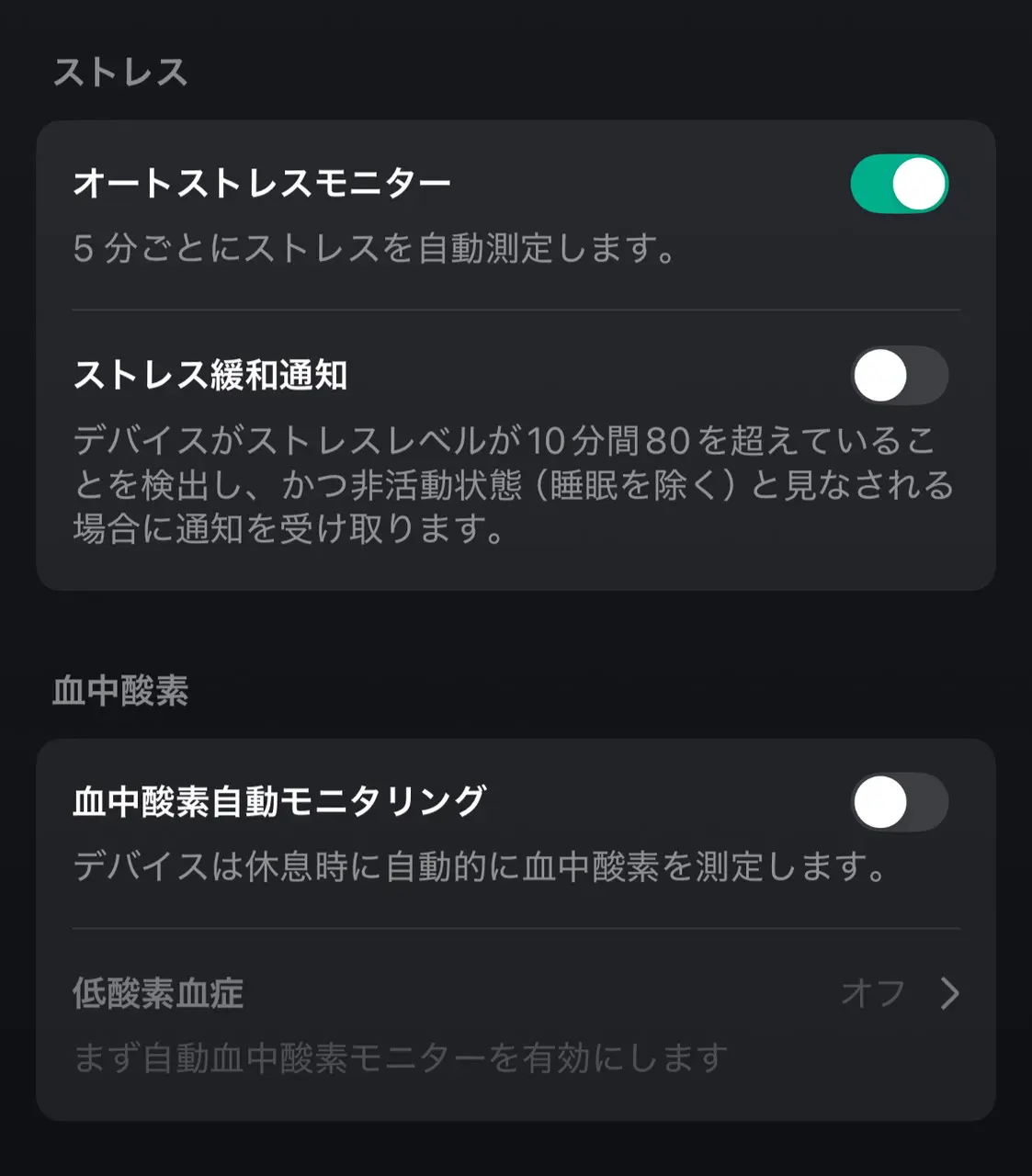 上記で紹介した以外にも、ストレス管理機能や、女性の方向けに生理周期の記録機能なども用意されています。