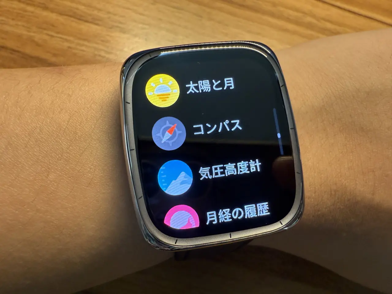 | 内蔵センサー | 健康:バイオトラッカーPPG 運動:加速度センサー、ジャイロスコープ、温度センサー、環境光センサー、地磁気センサー、気圧高度計 |