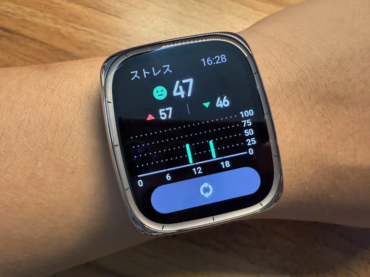 本製品には健康モニタリング機能が備わっており、ストレス・睡眠・心拍数・血中酸素飽和濃度などの数値を24時間監視(トラッキング)し、データとして可視化・保存しておくことができます。