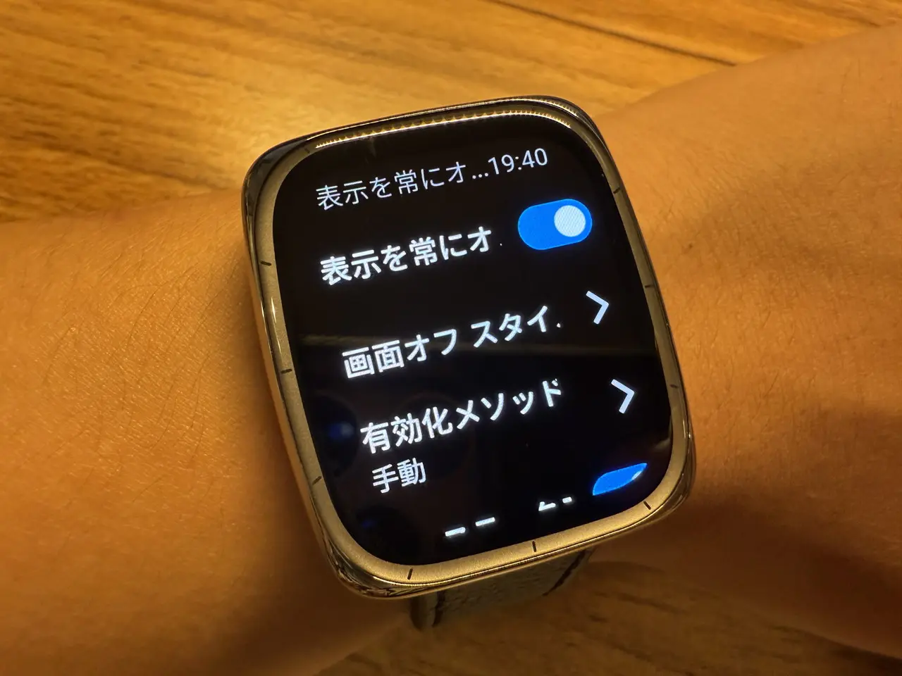 実際に筆者が、満充電状態から毎日就寝時以外は常に装着し続けてみたところ、ちょうど10日経ったいまでも残量が20%ほど残っていいます(常時表示機能はオフ)。