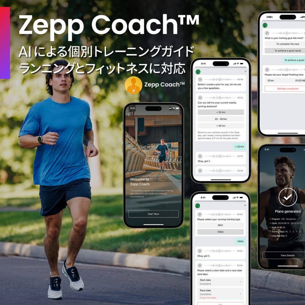 そしてAIの力を活用し、ユーザーの現在のランニングレベル、目標とするレースの日付と距離、およびレースの目的に基づいて、ベストパフォーマンスに導くランニングプランを自動生成してくれる「Zepp Coach」も搭載。