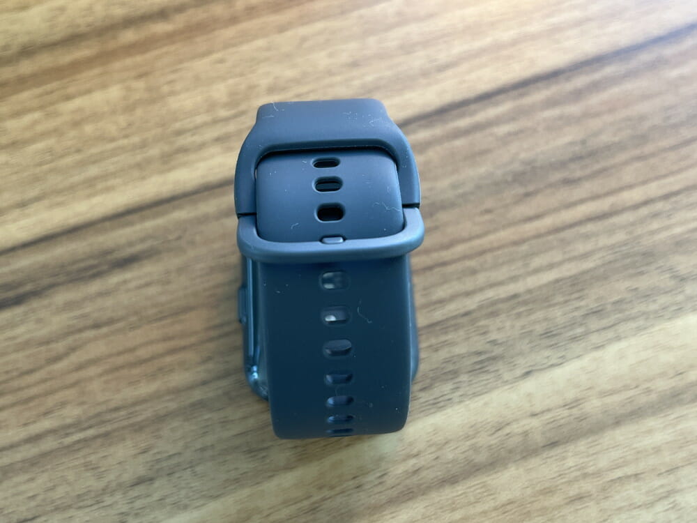 ▼後ろから見た様子。バンドはクラシックピンバックル仕様。汚れが付着しづらく、柔軟なシリコン素材で造られている。