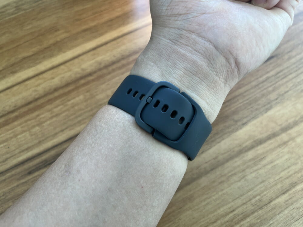 本体重量がバンドを含めて約40gと軽いため、長時間装着し続けても腕の疲れを生じなかった。