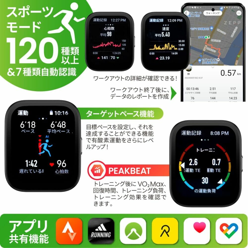 Zepp OS搭載で非常に豊富な機能を利用可能