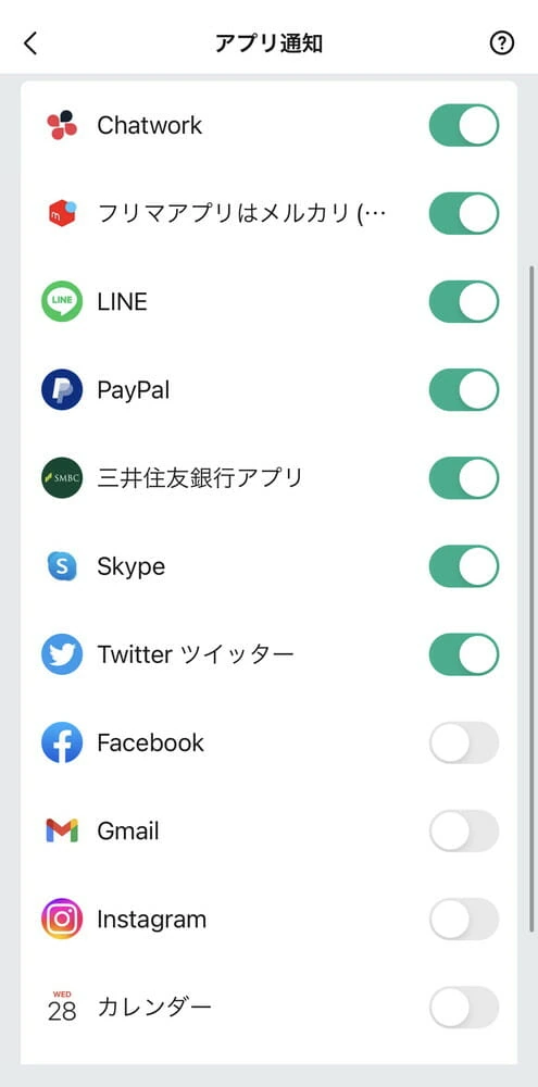 ▼アプリごとに通知のON/OFFを切り替えることも可能。