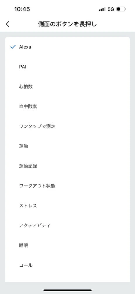 ウォッチ側面の物理ボタンは、長押しした際の機能を、アプリから自由に変更することが出来る。