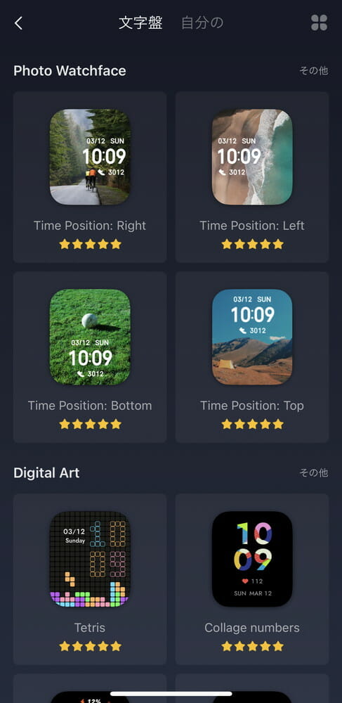▼公式アプリより、ウォッチフェイスを好みのテーマに変更することも可能。
