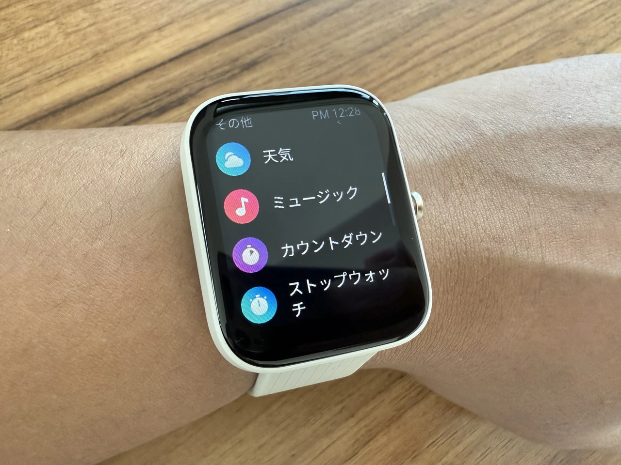 本製品には、一般的なスマートウォッチに用意されているほとんどの機能が用意されている。