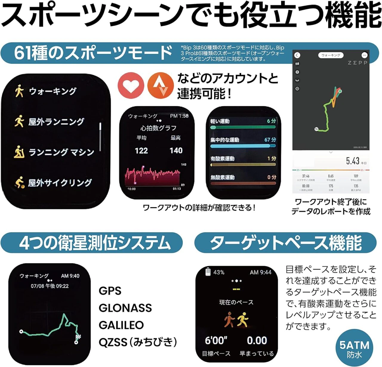 今回紹介した『Amazfit Bip 3 Pro』について、特徴をまとめると以下の通りだ。