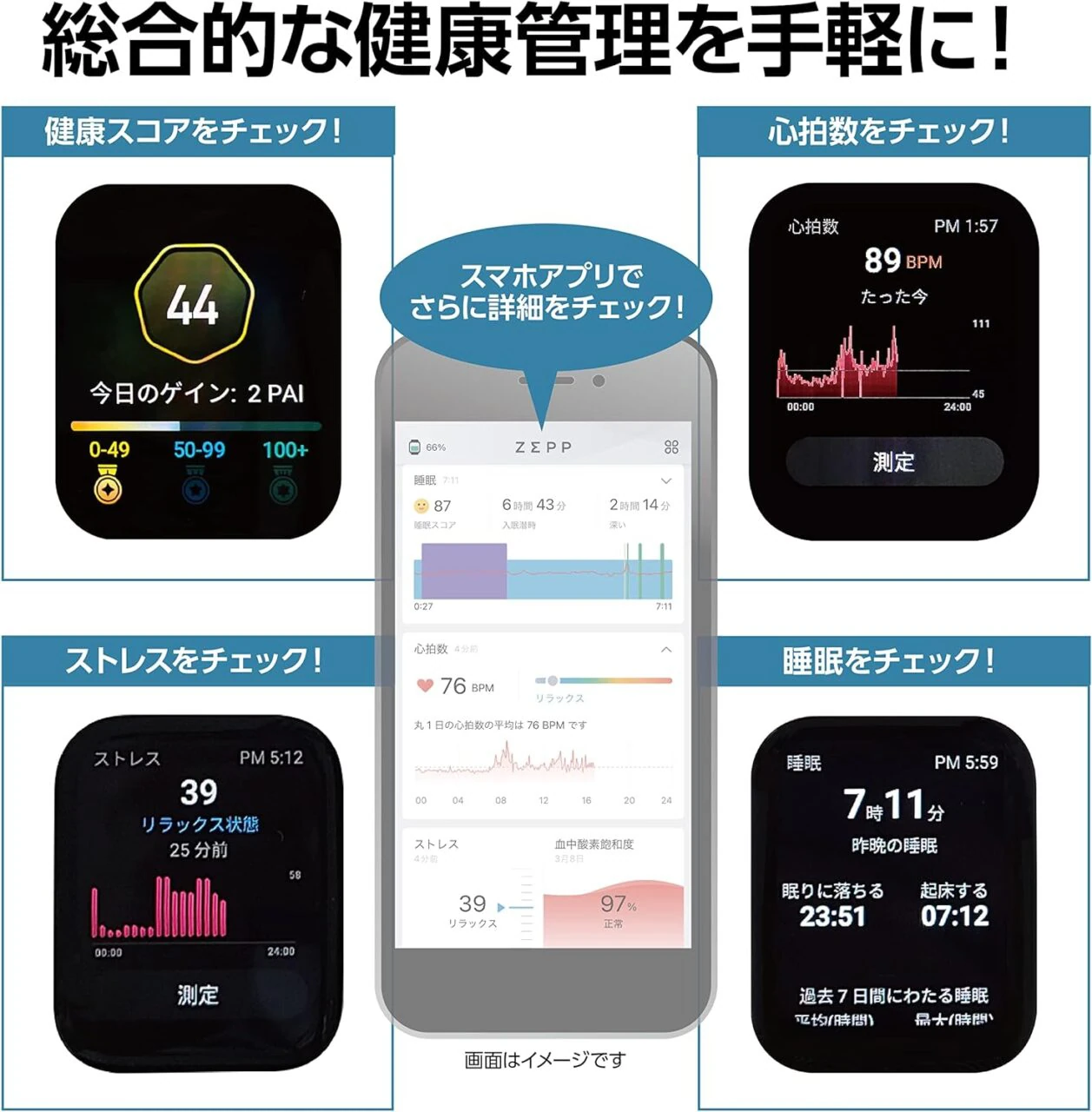 本製品では、公式アプリと組み合わせることで高度な健康管理を行うことが出来る。