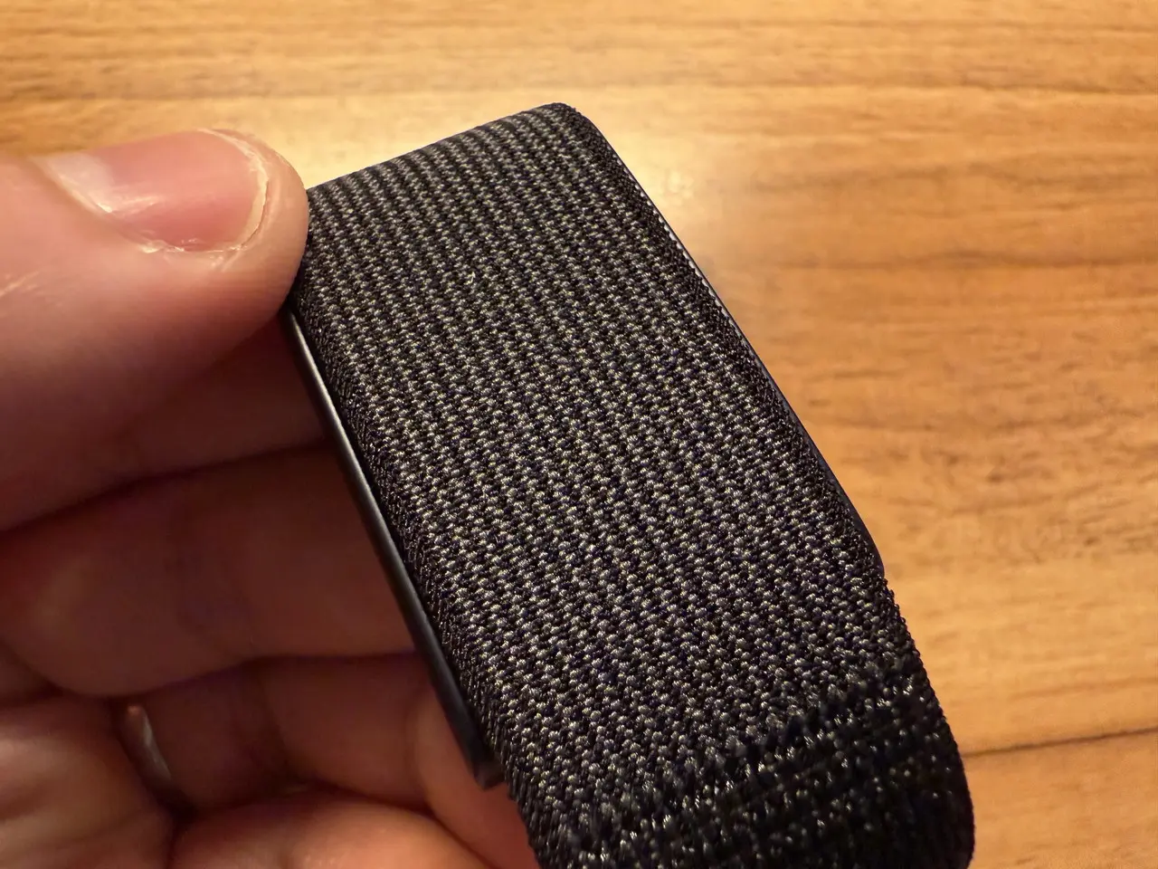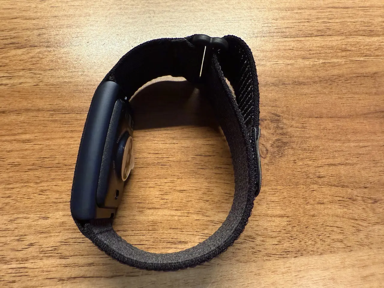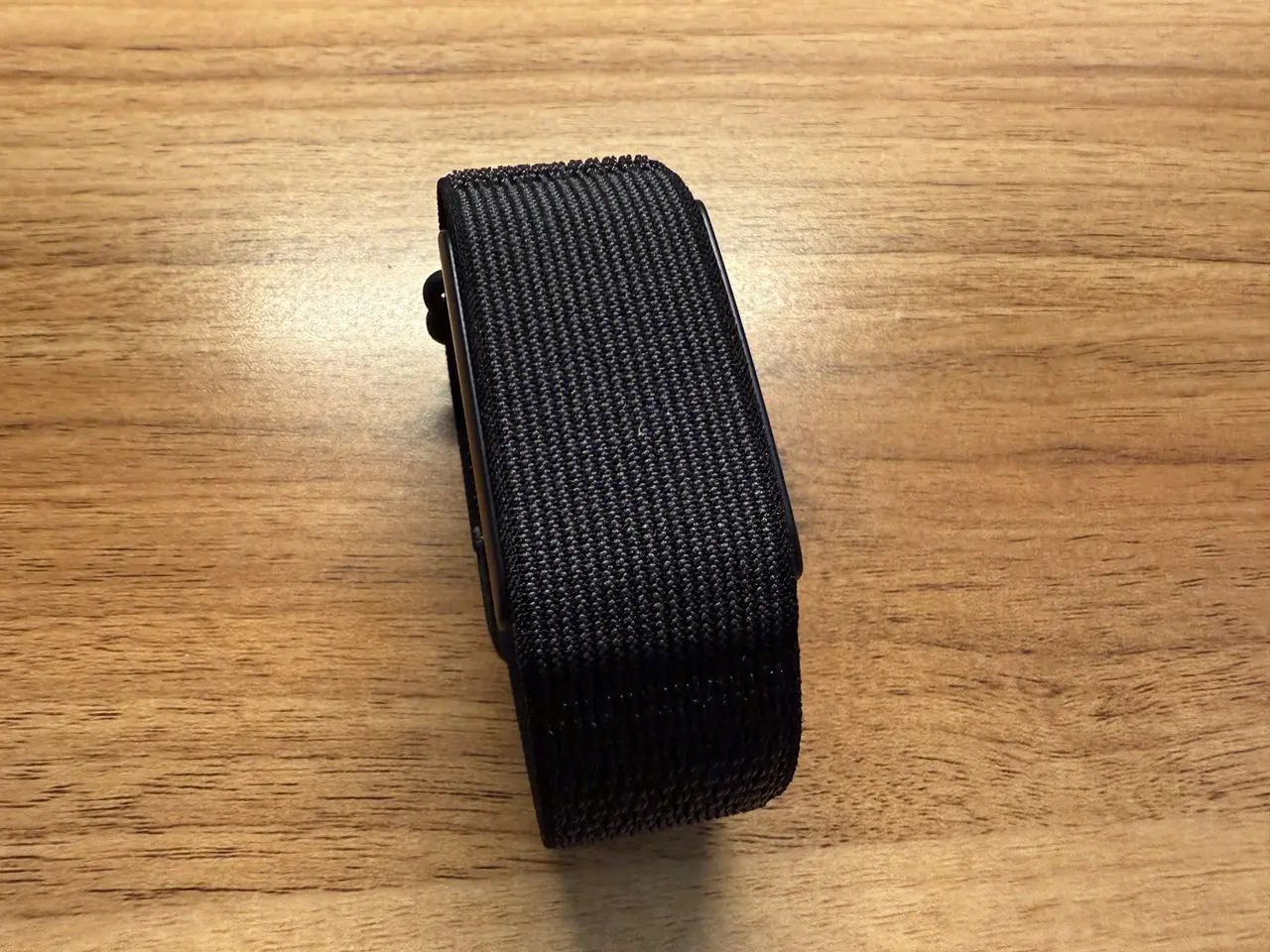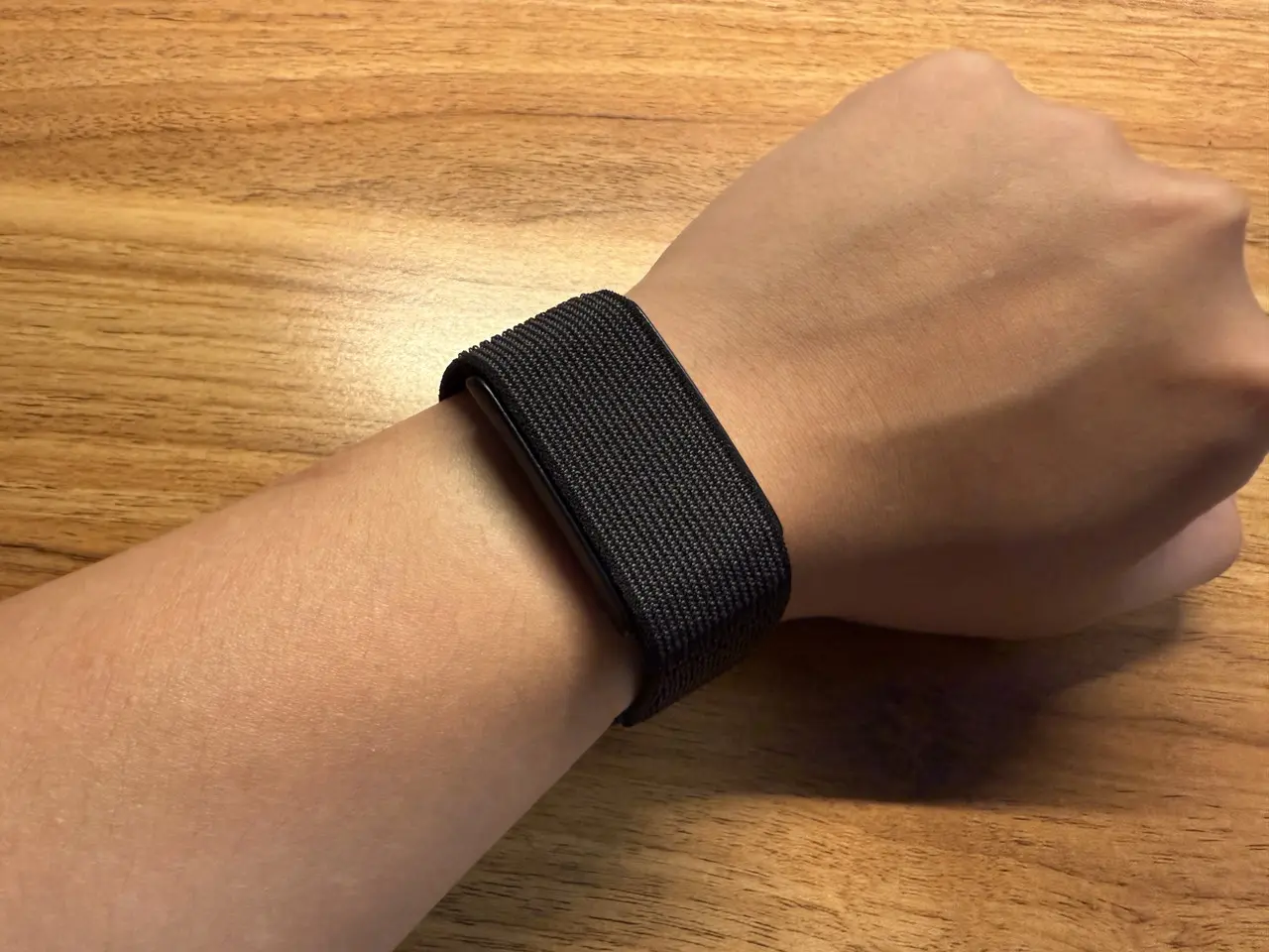 ▼Amazfit Helio Strap本体の外観。ディスプレイを備えておらず、一見すると何の変哲のないリストバンドのようにも見えます。