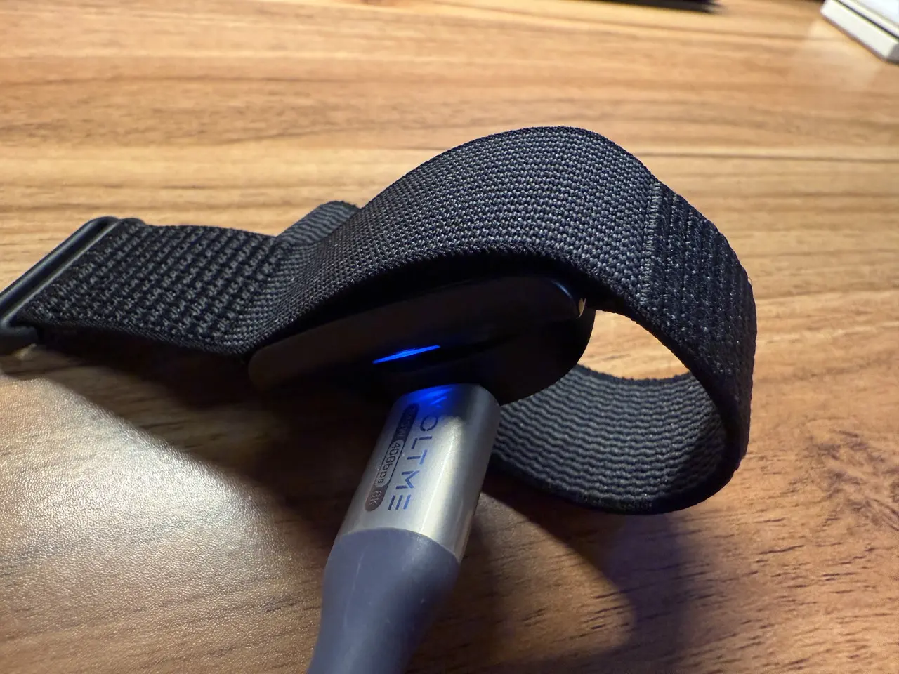 なお、Amazfit Helio Strapの充電残量は、内蔵されたインジケーターライトの点灯パターンから把握することができます。