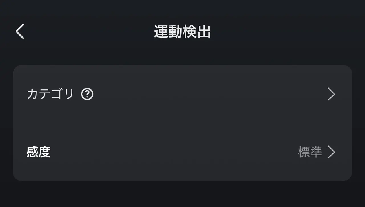▼運動検出機能のオン/オフ切替、および検出感度を調整可能。
