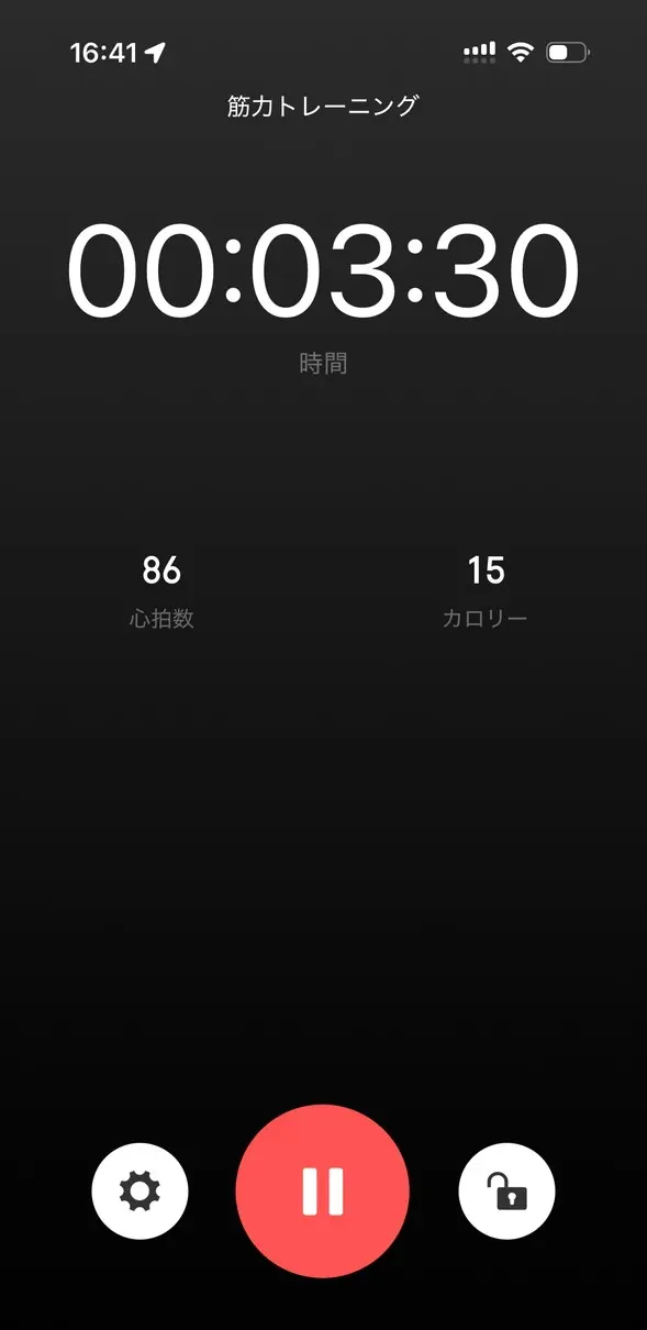 運動記録を開始すると、スマホ上に経過時間・心拍数・消費カロリーが表示されます。