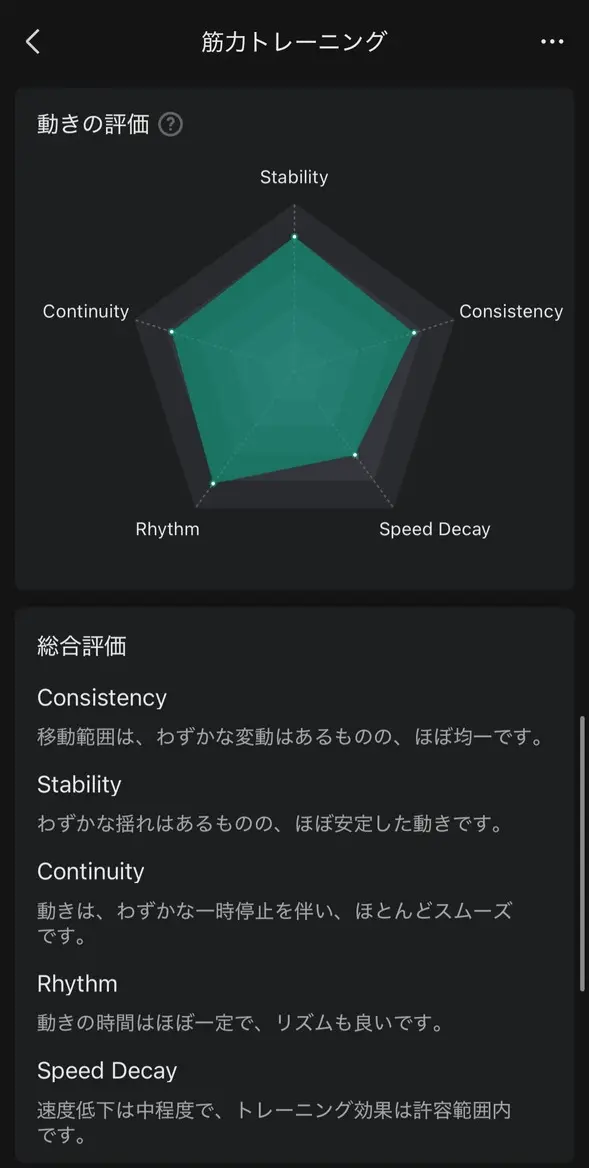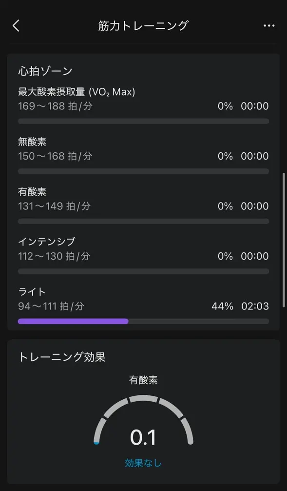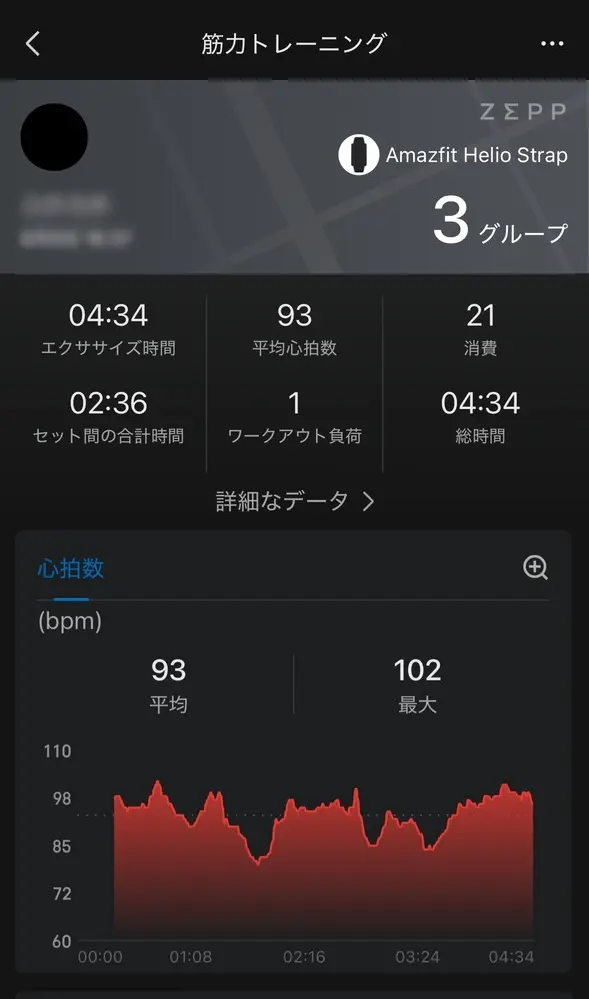 運動完了後、Zeppアプリ上で運動の結果を確認できます。