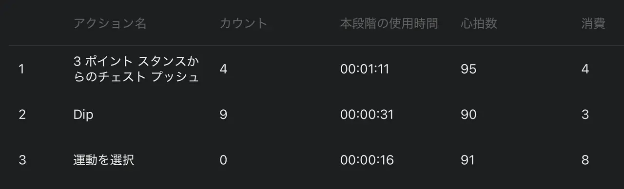 試しに、自宅で筋トレを行った際に記録を行ってみました。