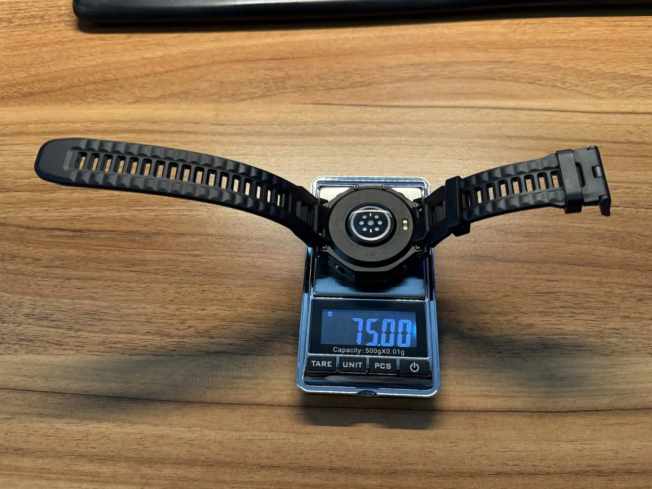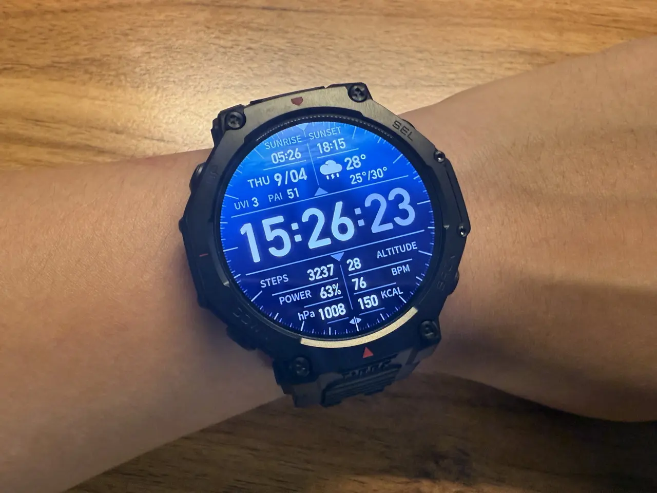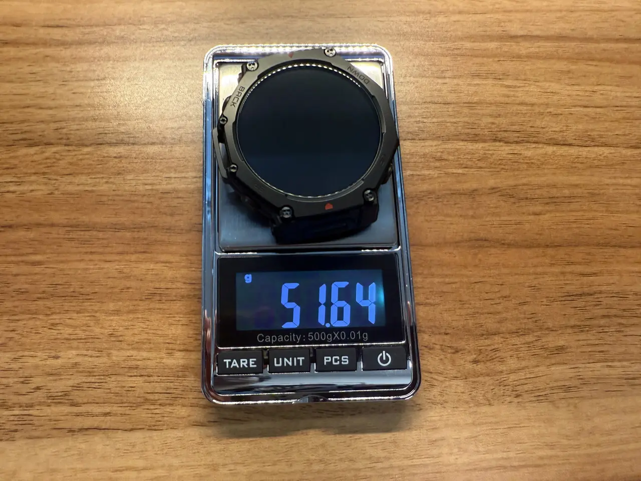 Amazfit T-Rex 3 Proは、タフネスウォッチらしい存在感のあるサイズ感ながら、実際に腕に装着してみると意外なほど快適です。重量はT-Rex 3より約7g重いものの、手首にずっしりと負担がかかるような印象はなく、長時間の着用でも気になりにくい仕上がりになっています。