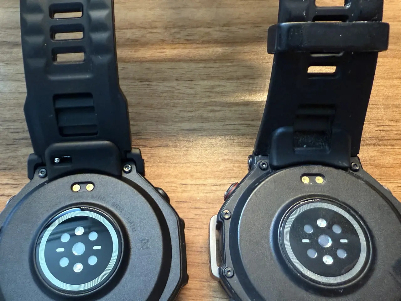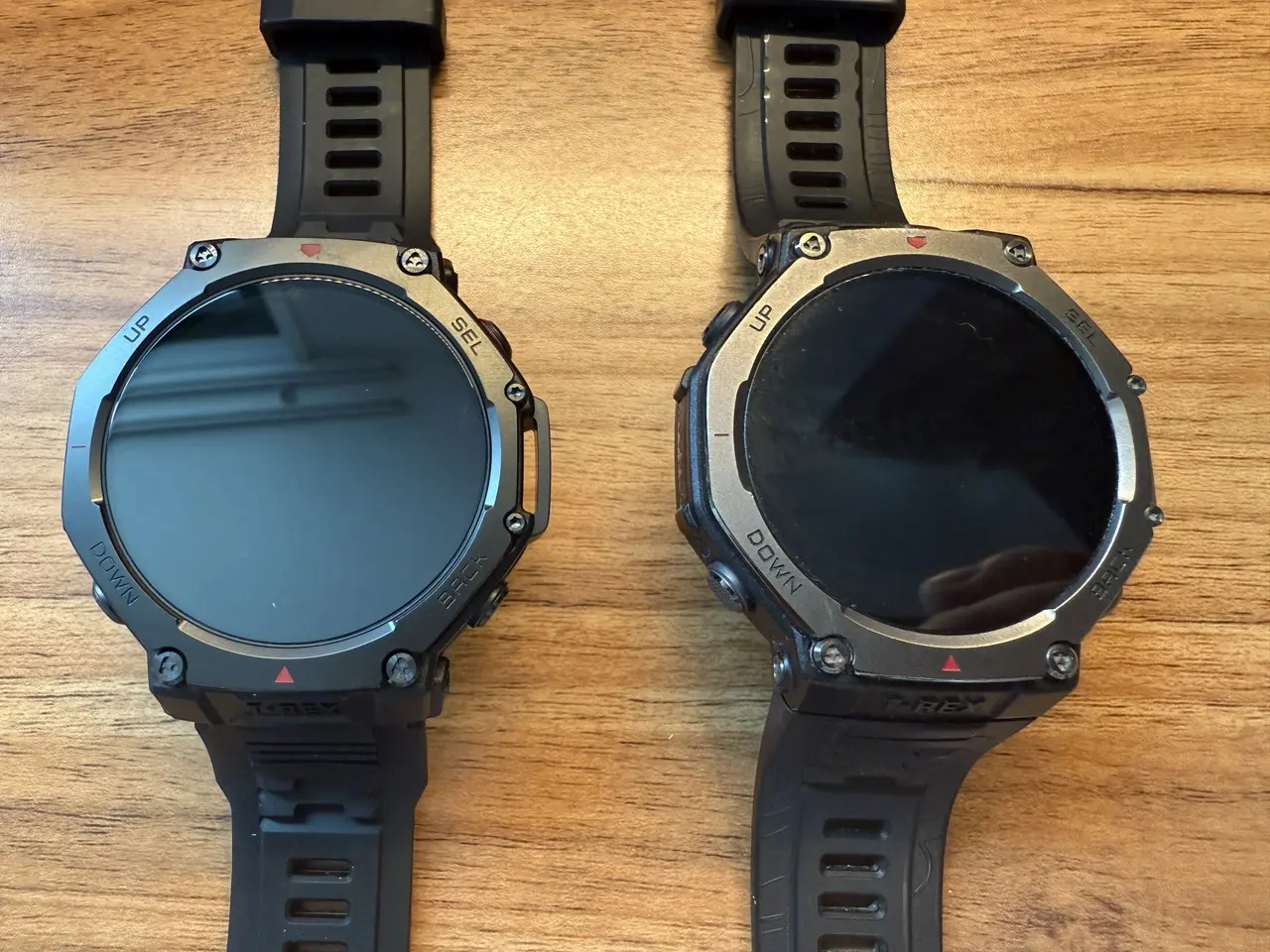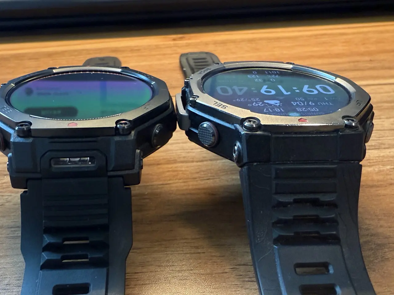 前モデル「Amazfit T-Rex 3」(画像右)と『Amazfit T-Rex 3 Pro』(画像左)のデザインを比べてみます。