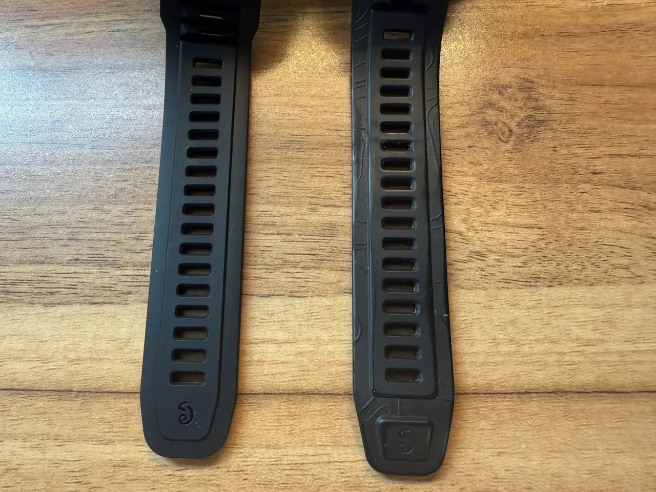 同梱ストラップについては、T-Rex 3 Pro(左)はシンプルで無地なのに対し、T-Rex 3(右)には地層を思わせる波状のラインが施されています。