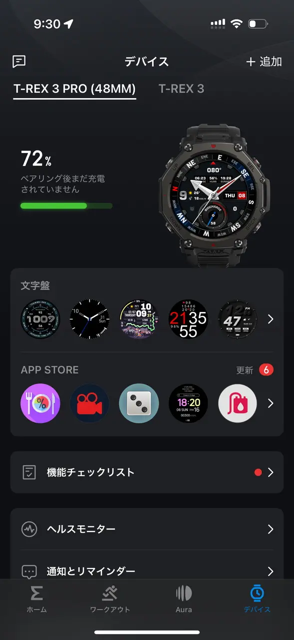 アプリから、「Zepp Aura」機能を利用できます。